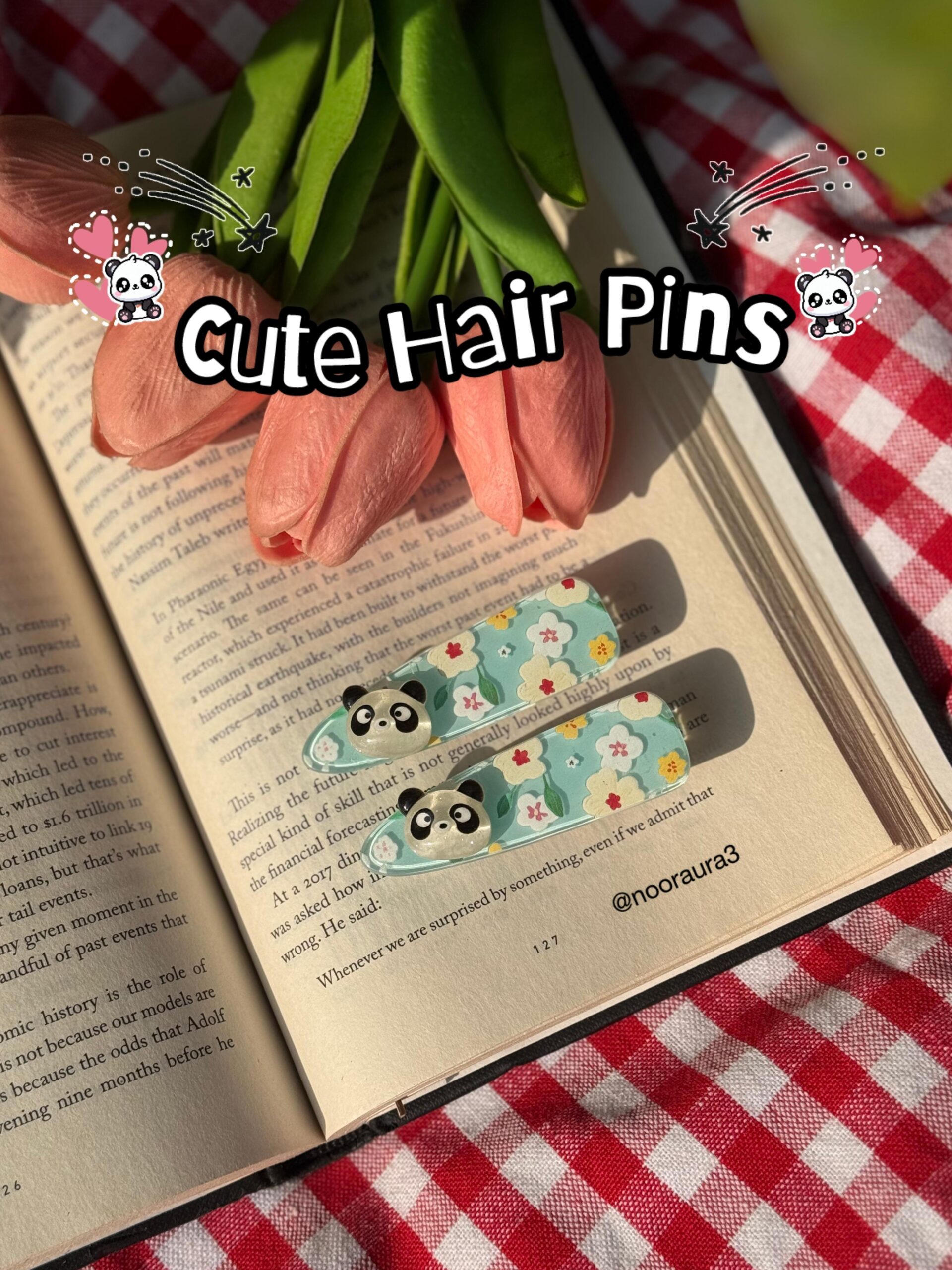 Cute panda hair pin set πΌπ with floral design & playful everyday charm.