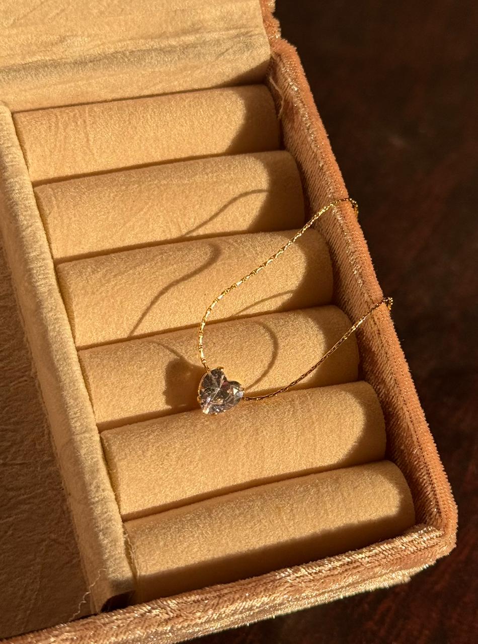 Minimal gold necklace with a heart-shaped stone โ anti-tarnish finish.